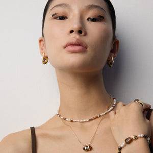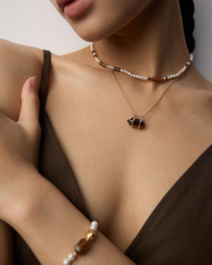 Vintage Gold Agate & Pearl S925 Silver Necklace
