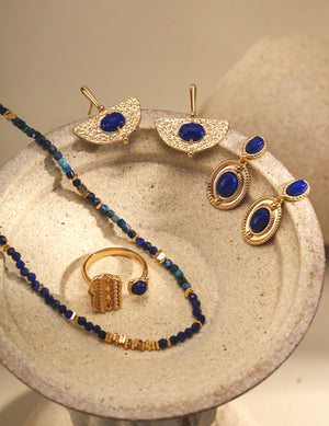 Size: Ring circumference approx. size 10 to 14 (adjustable), width approx. 15MM, Lapis Lazuli approx. 5MM