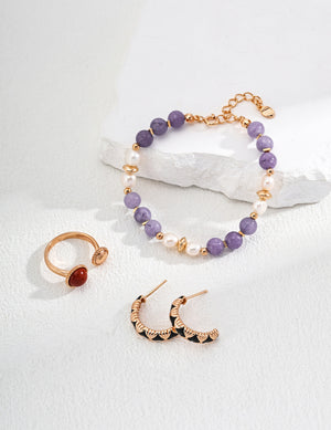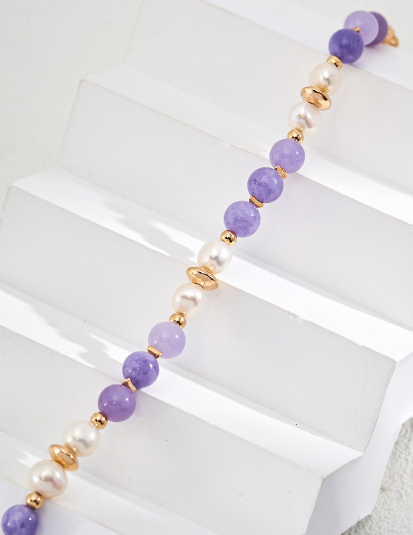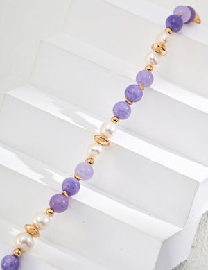 Minimalist Pearl & Lepidolite S925 Silver Bracelet