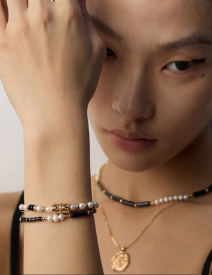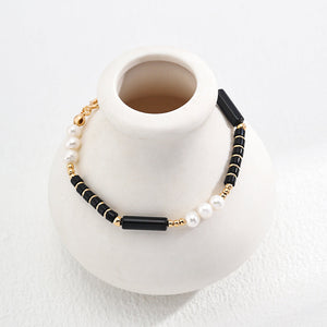 Vintage Gold Agate & Pearl S925 Silver Bracelet